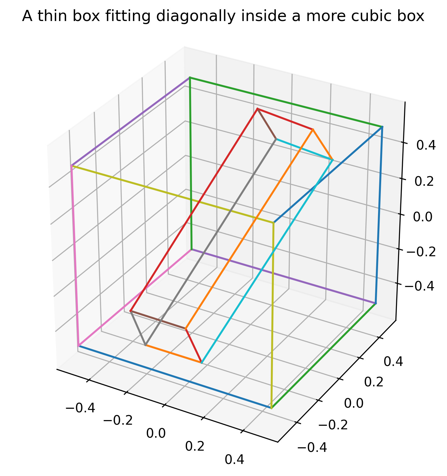 A box need not necessarily fit into another box in an axis aligned way. For example, a relatively ‘thin’ box (two small dimensions and one larger dimension) can be fit into another more more ‘cubic’ box diagonally even if every dimension of the ‘cubic’ box is smaller that the ‘thin’ box’s large dimension.